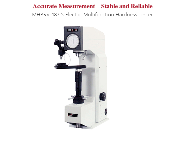 Product OverviewMitech MHBRV-187.5 electric multifunctional hardness tester, based on the mechanical principle of positive pyramid diamond or spherical cemented carbide indenter pressing into the sample surface to produce indentation, realizing Brinell, Rockwell, Vickers three different materials hardness measurement by measuring the depth or diameter of the indentation. With novel appearance, full-featured, Rockwell hardness value can be directly read by the dial, Vickers, Brinell hardness values need to look up the table, easy operation, it can meet the needs of users of a variety of hardness testing. It is widely used in metal processing and manufacturing, various metal material’s failure analysis and other fields like colleges and research institutions. It is the new type multifunctional testing instrument for mental and part of the the non-metallic materials research and hardness test.