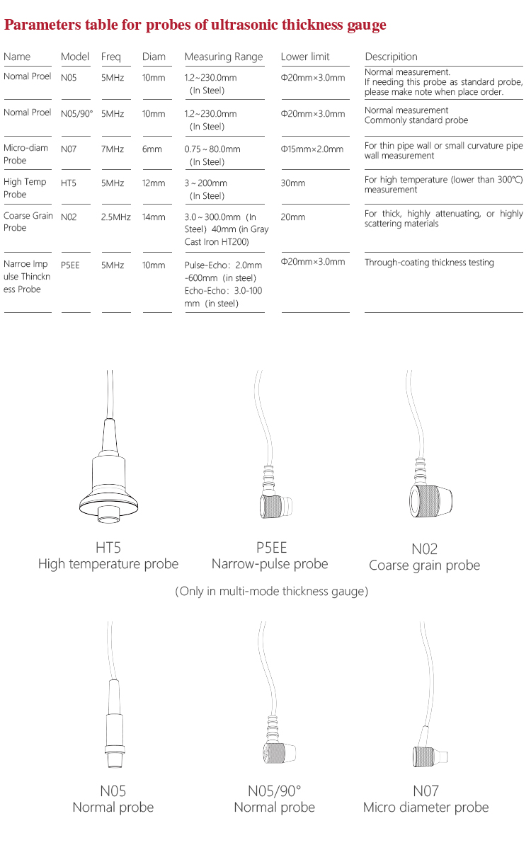 Probe Diameter Standard Probe P5EE is 10mm, Probe N05 is10MM、Probe N07 is 6MM、Probe HT5 is12MM、Probe N02 is12MM