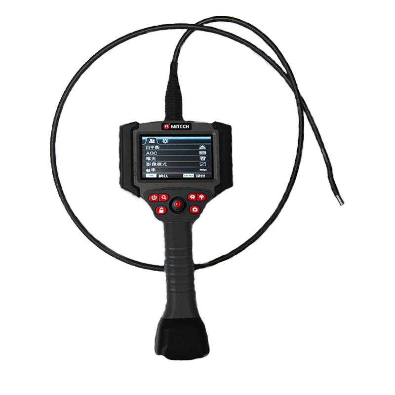 工作原理美泰电子视频内窥镜采用间接目视检测原理,利用探头顶端的CMOS图像传感器实时采集狭小空间内表面的图片信息并通过插入管内的视频信号电缆将数字信号传输至仪器主机从而实现图像的显示和存储,装有图像传感器的探头通过导向关节与插入管连接,导向关节可通过内置的导向钢丝在微型电机控制下360°自由转动方便图片传感器实时拍摄传输图片资料。